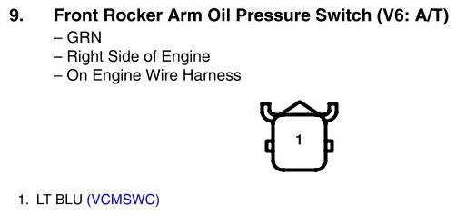 View 9 - Front Rocker Arm Oil Pressure Switch Connector View (V6: A/T)