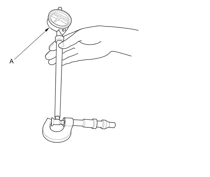 2. Zero the dial indicator (A) to the piston pin diameter.