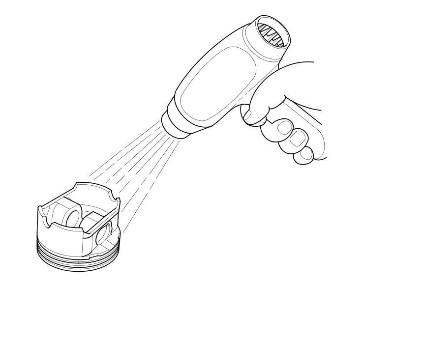 2. Coat the piston pin bore in the piston, the bore in the connecting rod, and the piston pin with new engine oil.