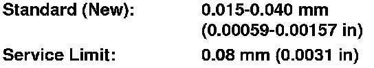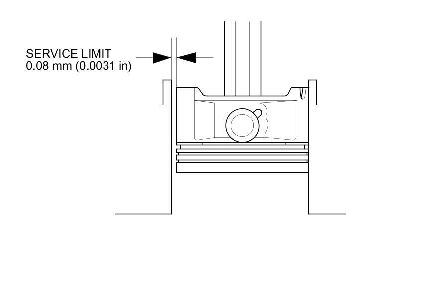 7. Calculate the difference between cylinder bore diameter and the piston diameter. If the clearance is near or exceeds the service limit, inspect the piston and the cylinder bore for excessive wear.