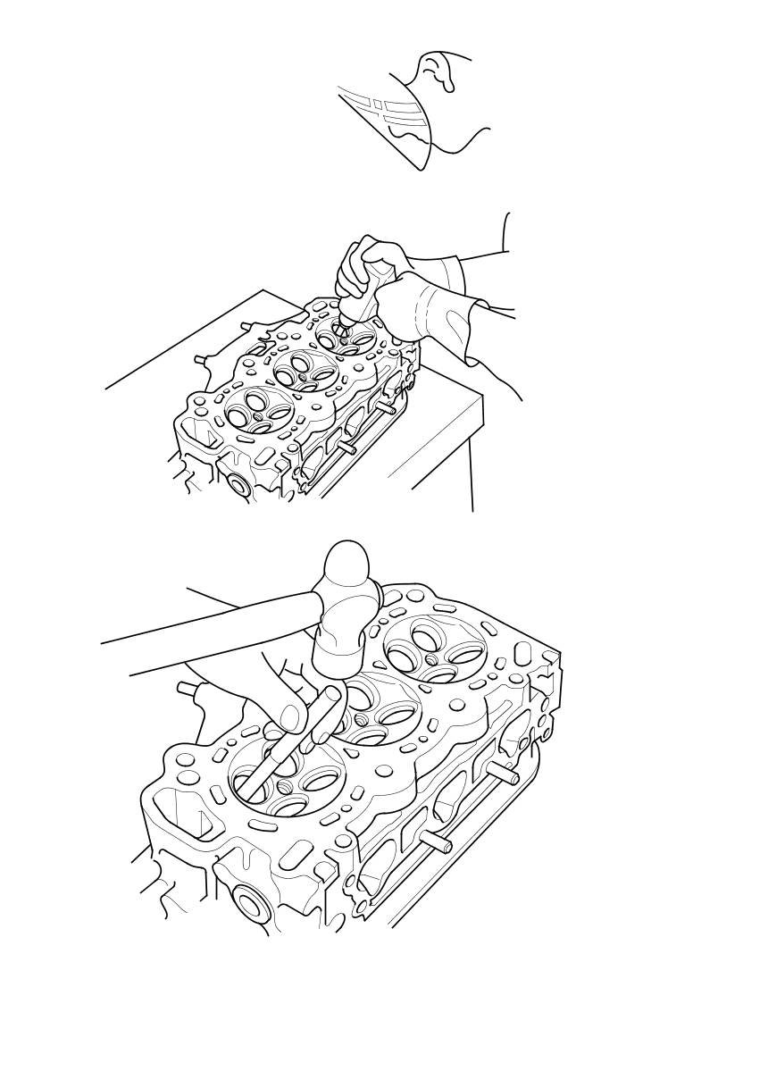 6. Turn the head over, and drive the guide out toward the camshaft side of the head.