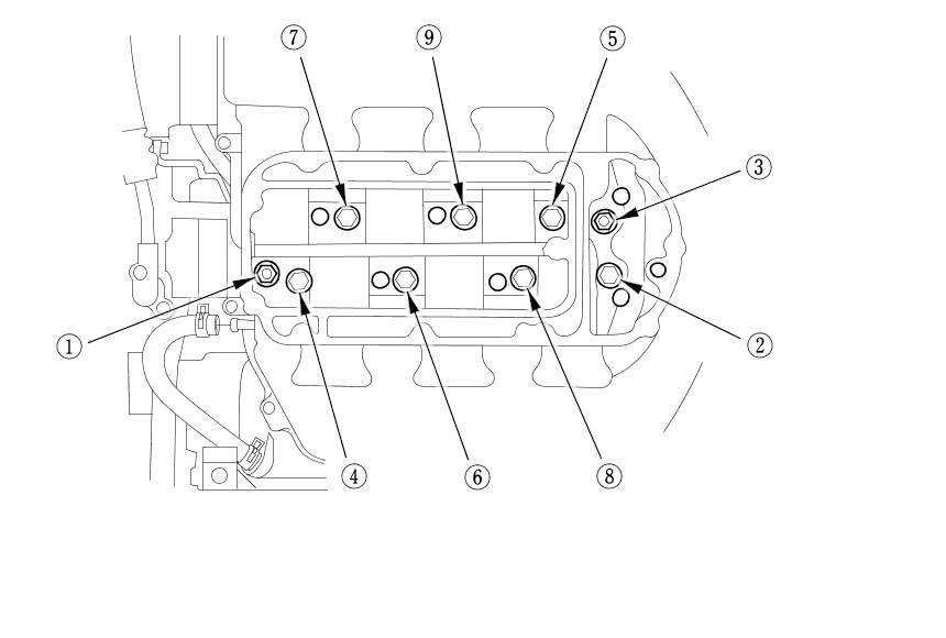 10. Remove the intake manifold mounting bolts and nuts sequentially in three steps, then remove the intake manifold.