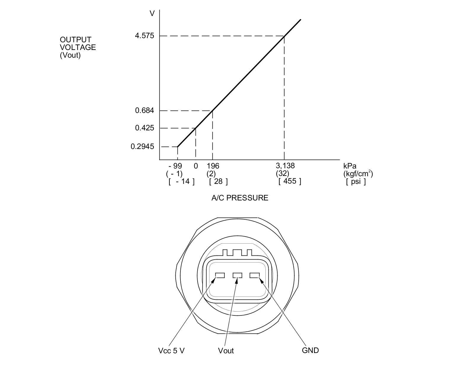The response of the A/C pressure sensor is shown in the graph.