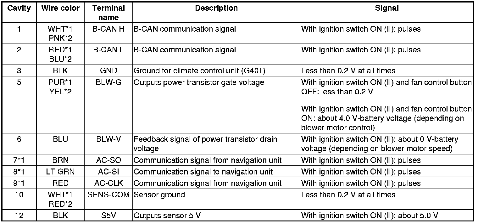 Climate Control Unit Inputs and Outputs (cont'd)