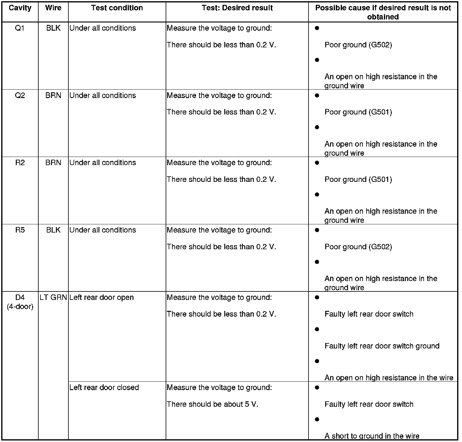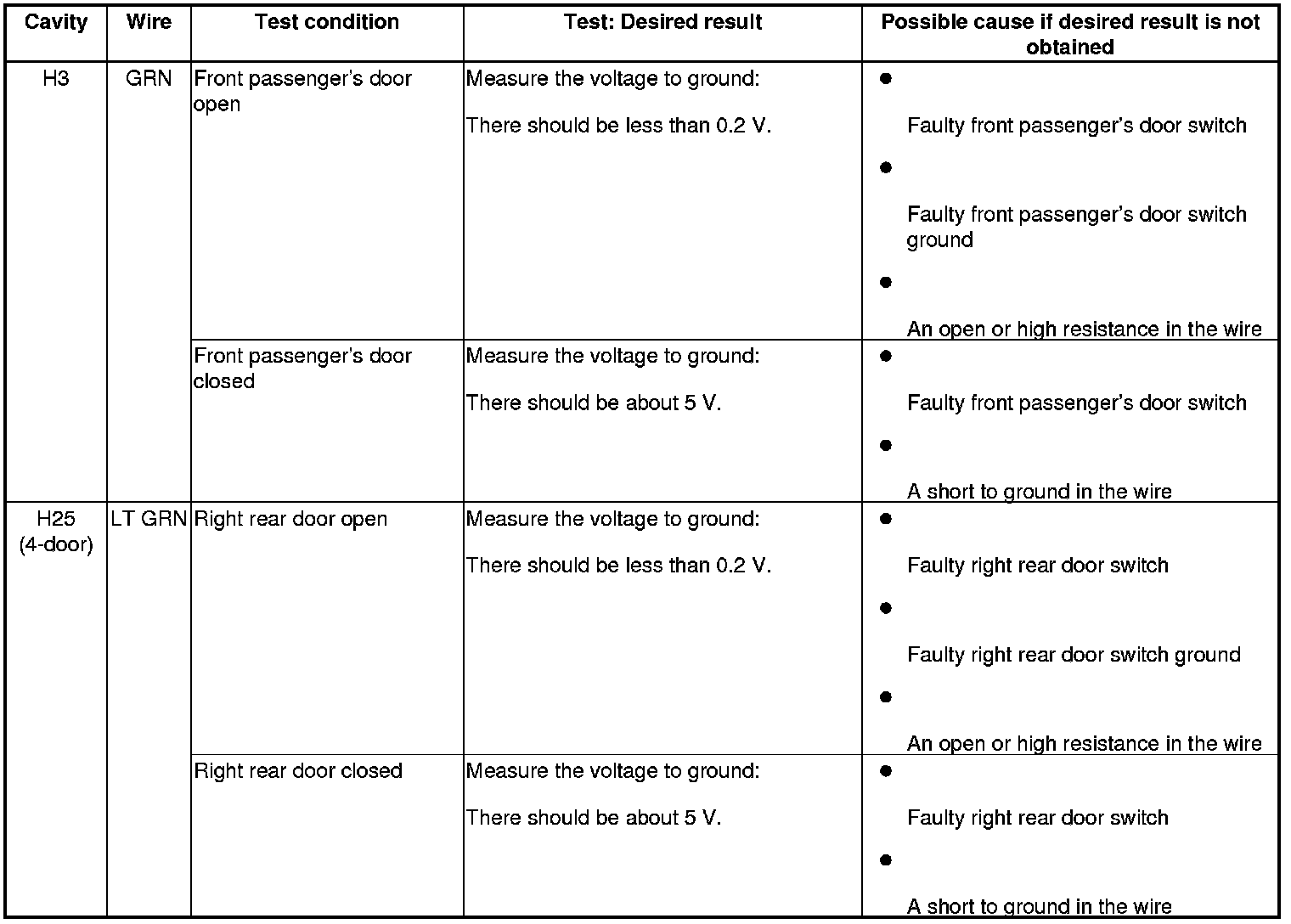 Entry Lights Control System (Drivers and Passengers MICU, and Door Multiplex Control Unit) Input Test