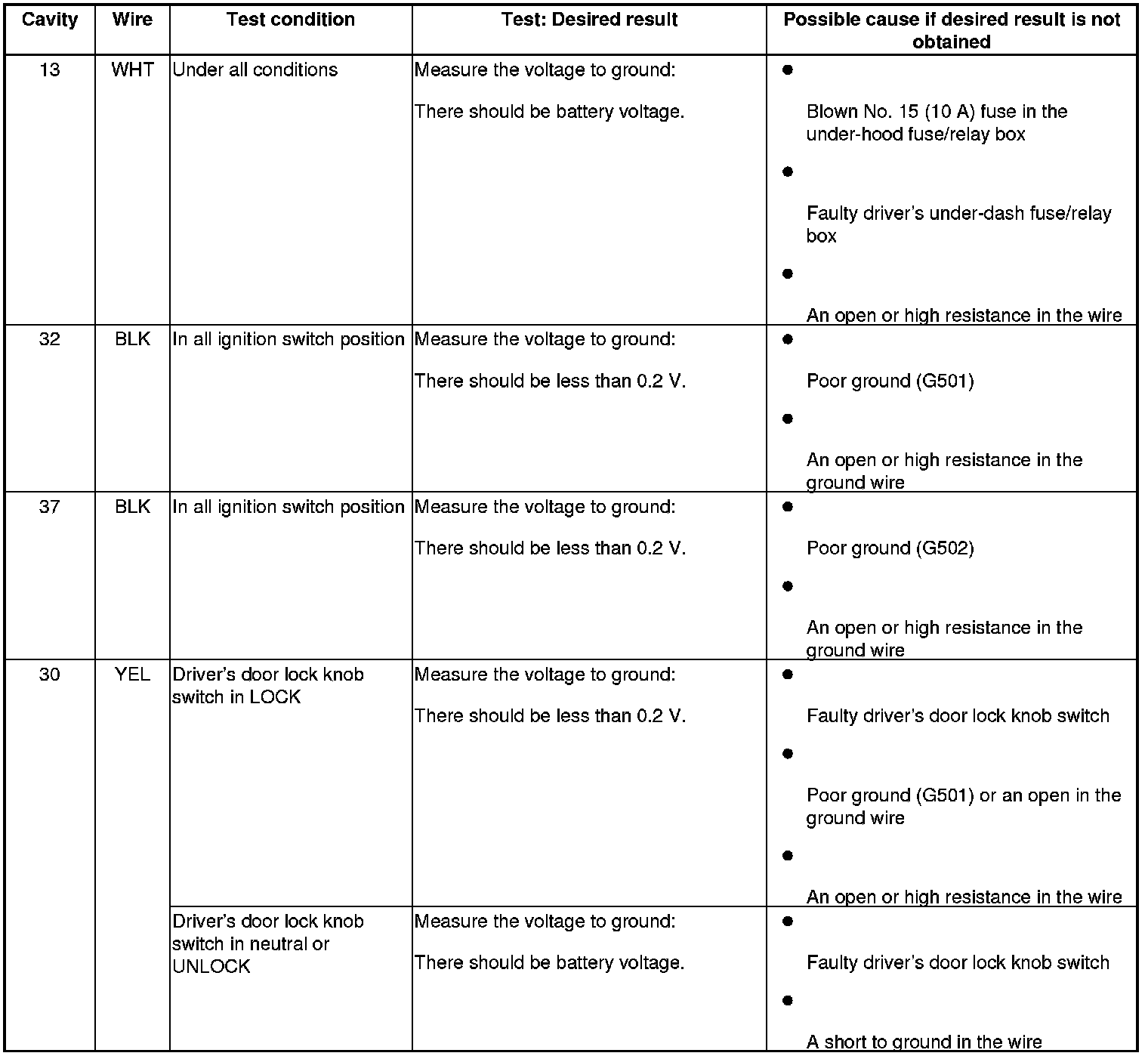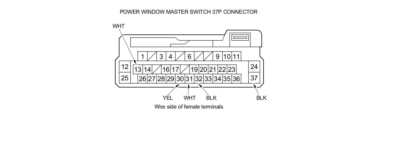 15. Reconnect the 37P connector to the power window master switch, and do the following input tests: