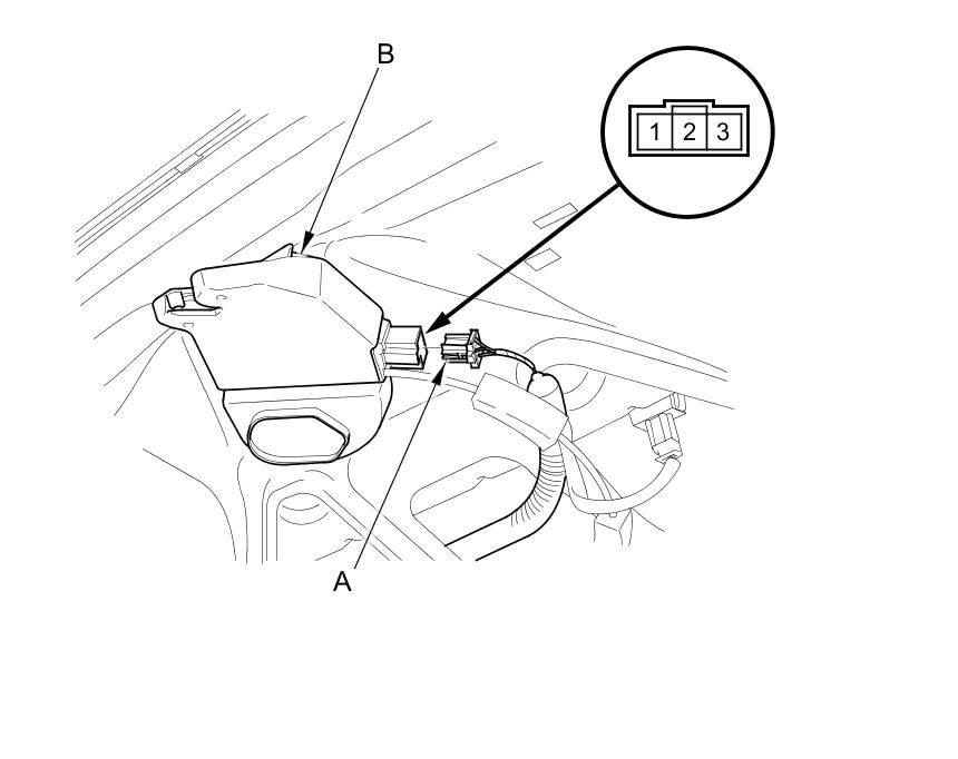 2. Disconnect the 3P connector (A) from the trunk lid latch assembly (B).
