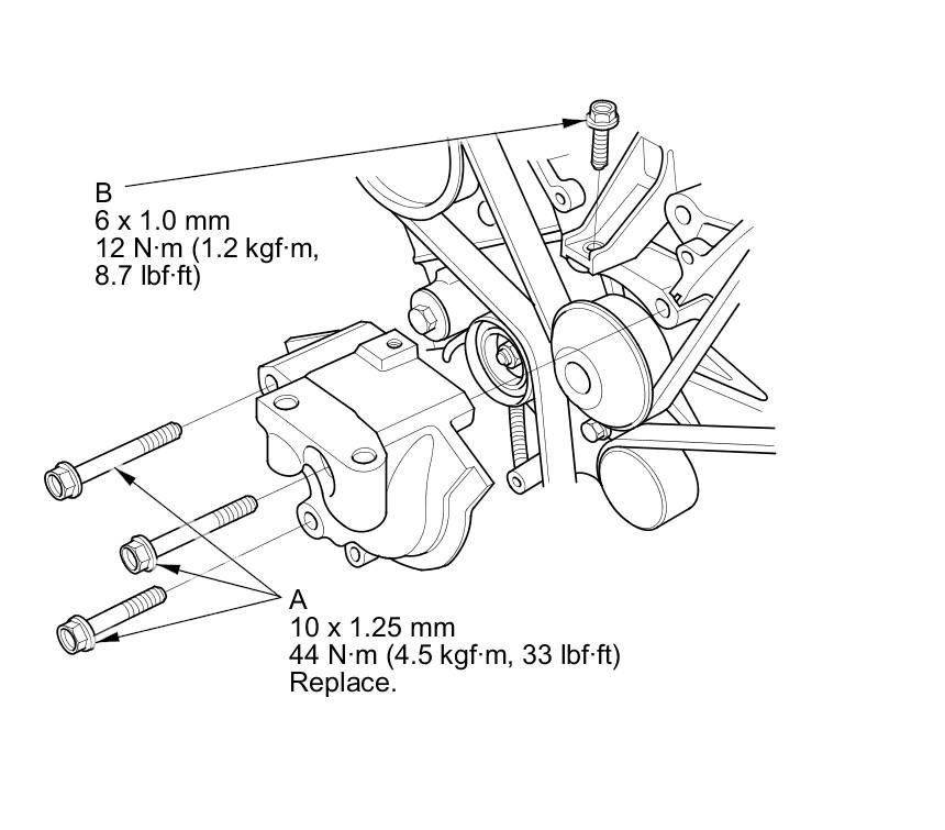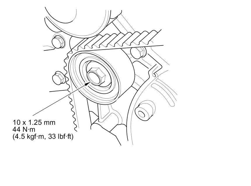 5. If the auto-tensioner has extended and the timing belt cannot be installed, do the timing belt replacement procedure Timing Belt Replacement.
