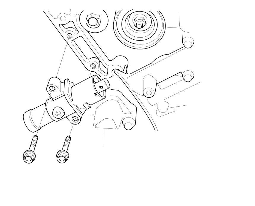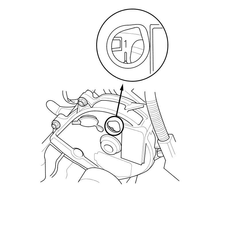 10. Thread the battery clamp bolt in as shown to hold the timing belt adjuster. Tighten it by hand, do not use a wrench.