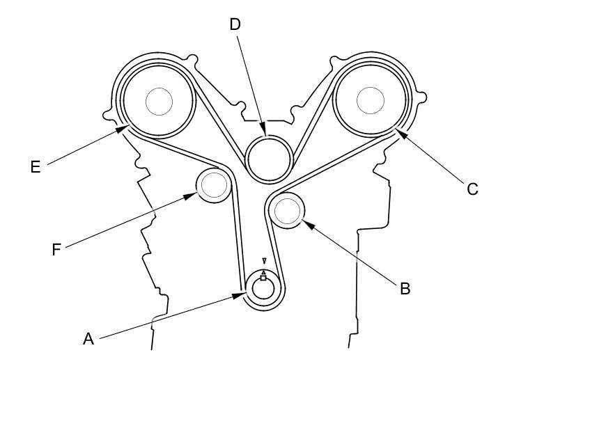 - If the camshaft pulley marks are not at TDC, remove the timing belt and repeat steps 3 through 23.