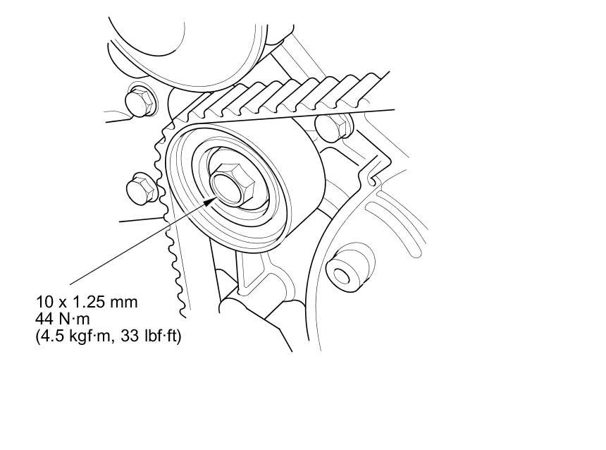 13. Tighten the idler pulley bolt.
