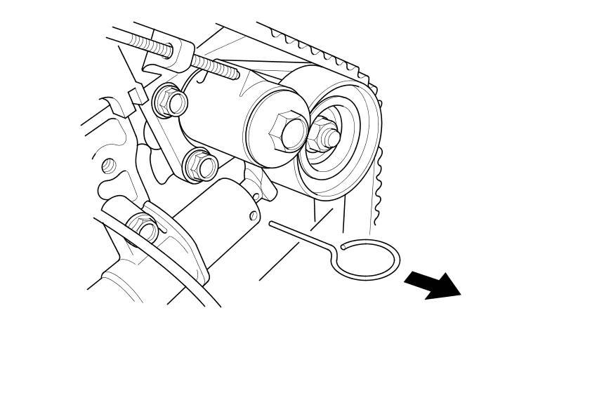 14. Remove the pin from the auto-tensioner.