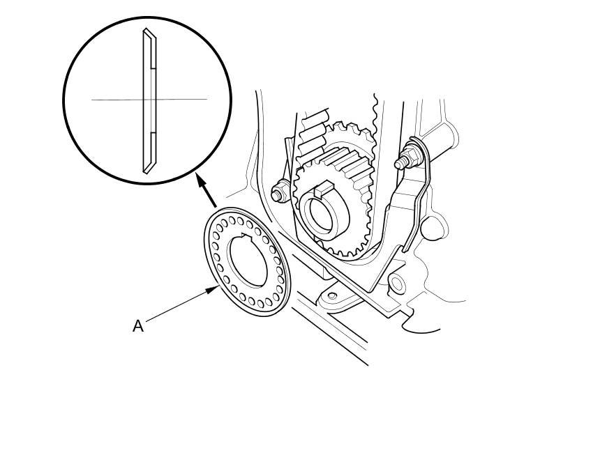 17. Install the timing belt guide plate (A) as shown.