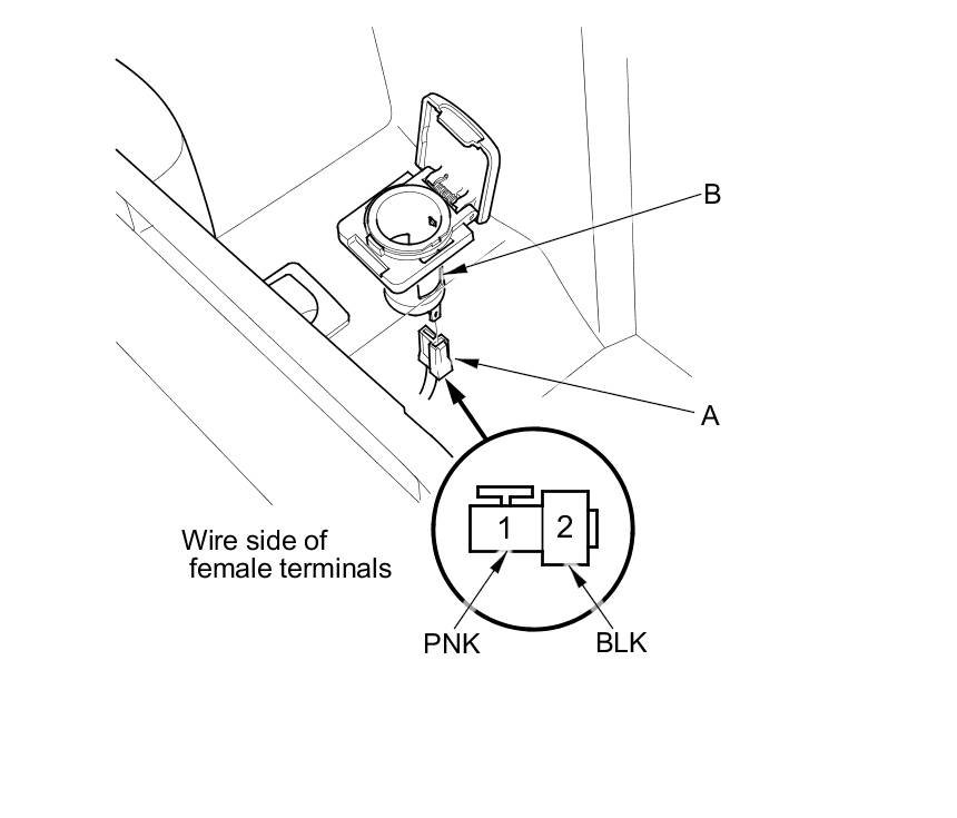 6. Measure the voltage between console accessory power socket 2P connector terminal No. 1 and body ground. There should be battery voltage.