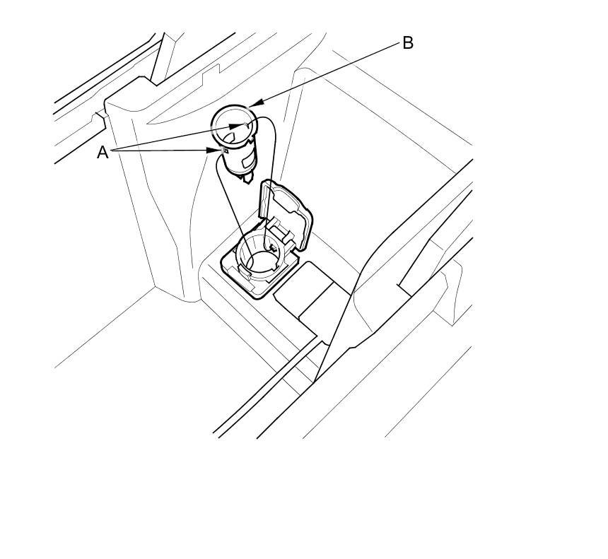 2. Disconnect the 2P connector (A) from the console accessory power socket (B).