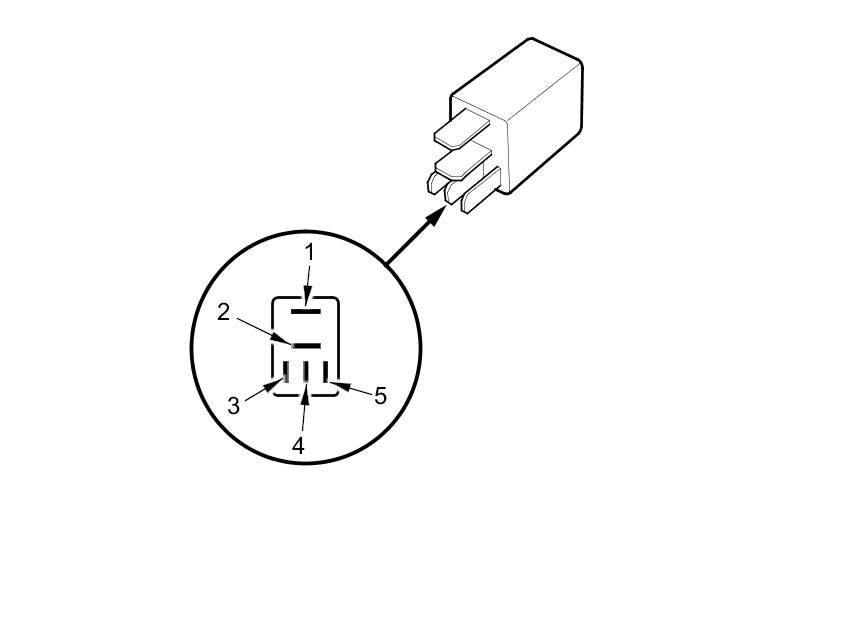 - There should be continuity between terminals No. 1 and No. 2 when battery power is connected to terminal No. 5, and battery ground is connected to terminal No. 3.