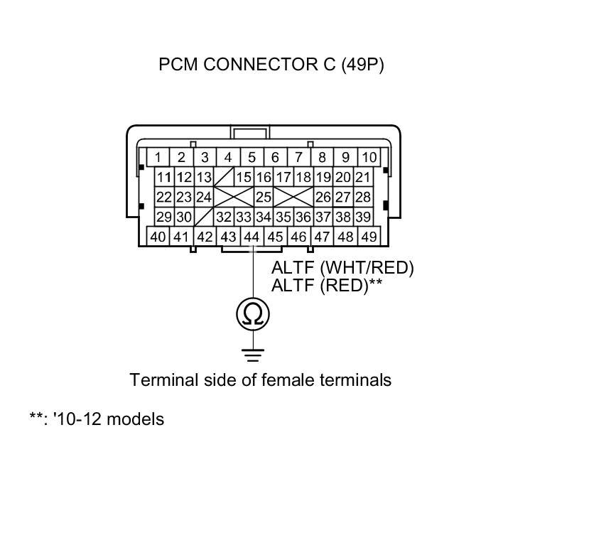 8. Check for continuity between ECM/PCM connector terminal C44 and body ground.