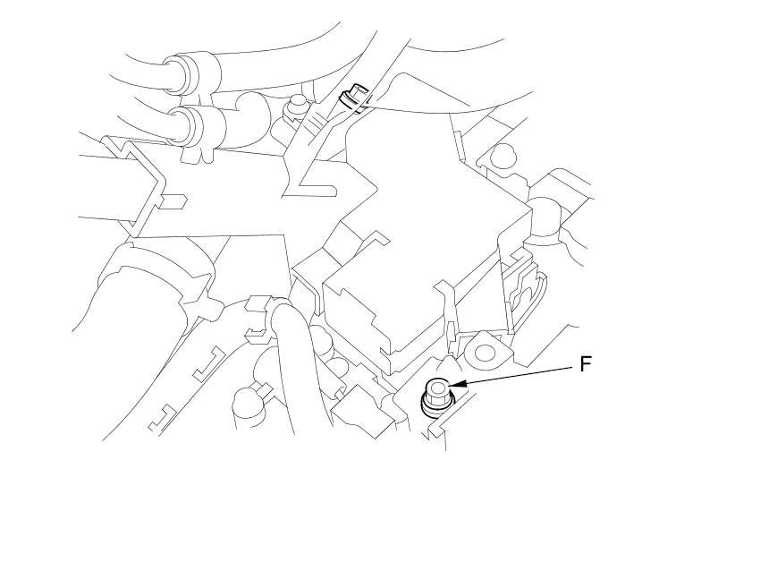 21. Connect the A/T oil pressure gauge to the 4th clutch pressure inspection port (F), then temporarily install the air cleaner housing.