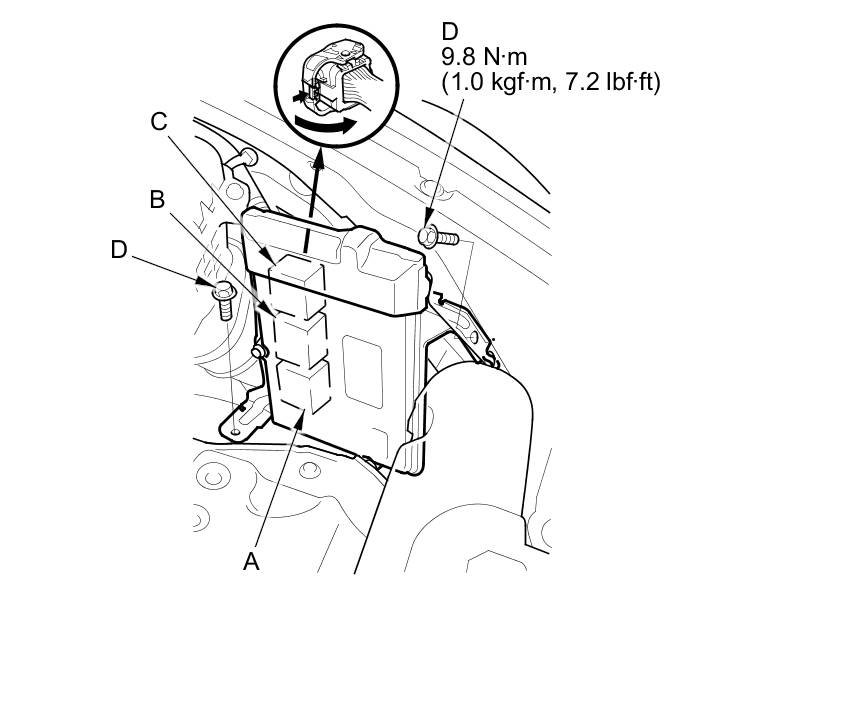 NOTE: The PCM overwrites data and monitors the EVAP system for about an hour after the ignition switch is turned to LOCK (0). Jumping the SCS line after turning the ignition switch to LOCK (0) cancels this function. Disconnecting the PCM during this function, without jumping the SCS line first, can damage the PCM.