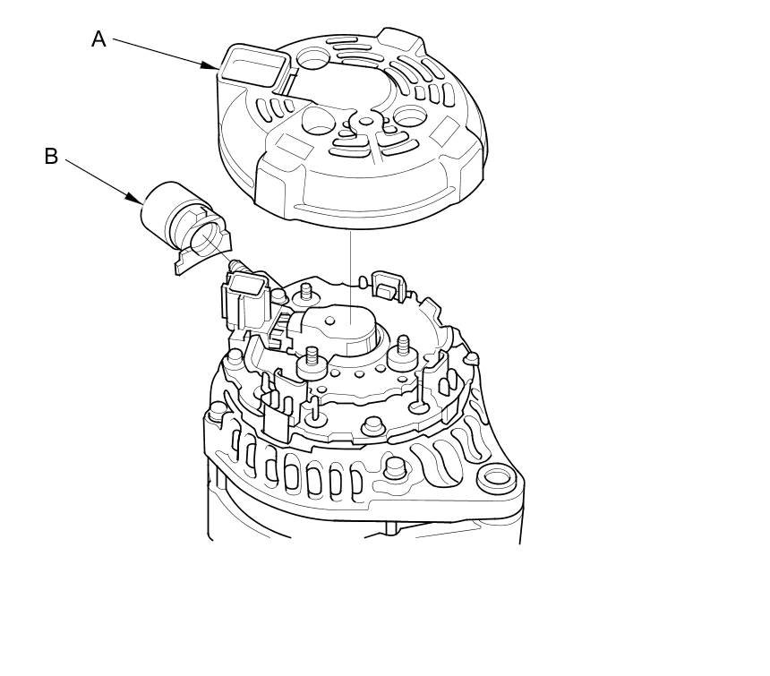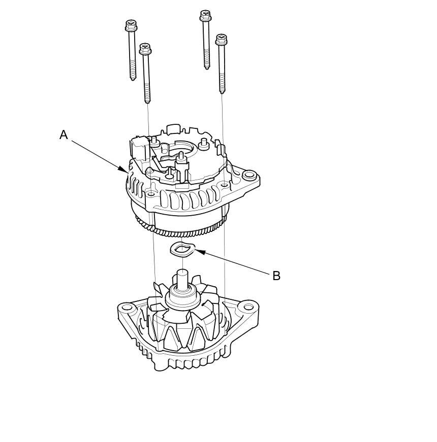 24. After assembling the alternator, turn the pulley by hand to make sure the rotor turns smoothly and without noise.