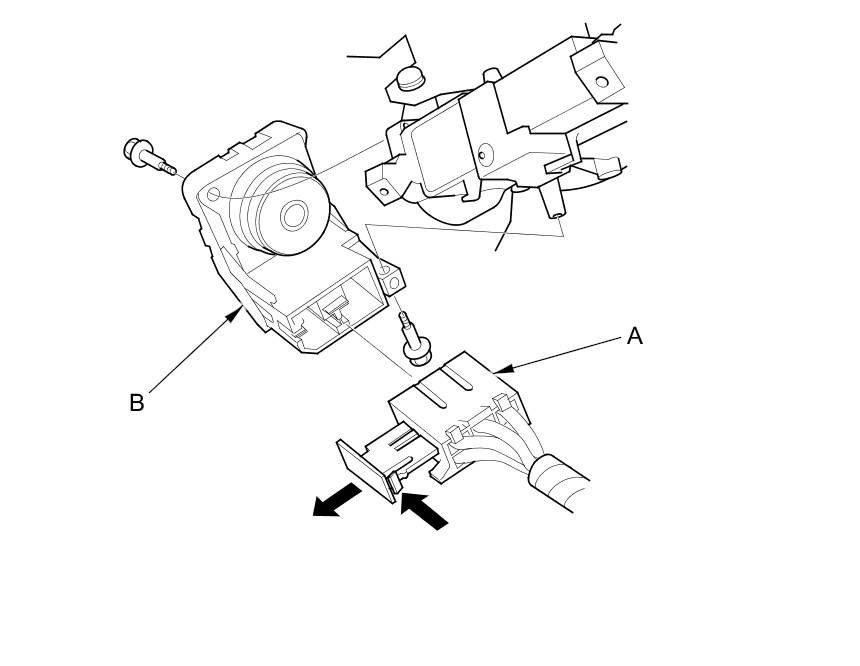 3. Disconnect the 5P connector (A) from the ignition switch (B).