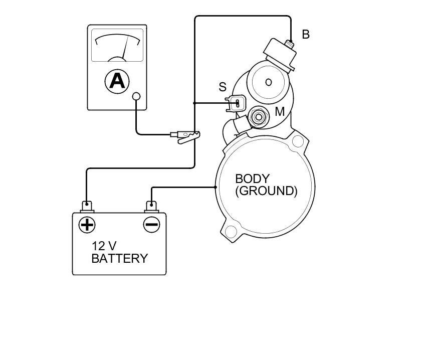 10. If the electric current meets the specification when the battery voltage is at 11.5 V, the starter is working properly.