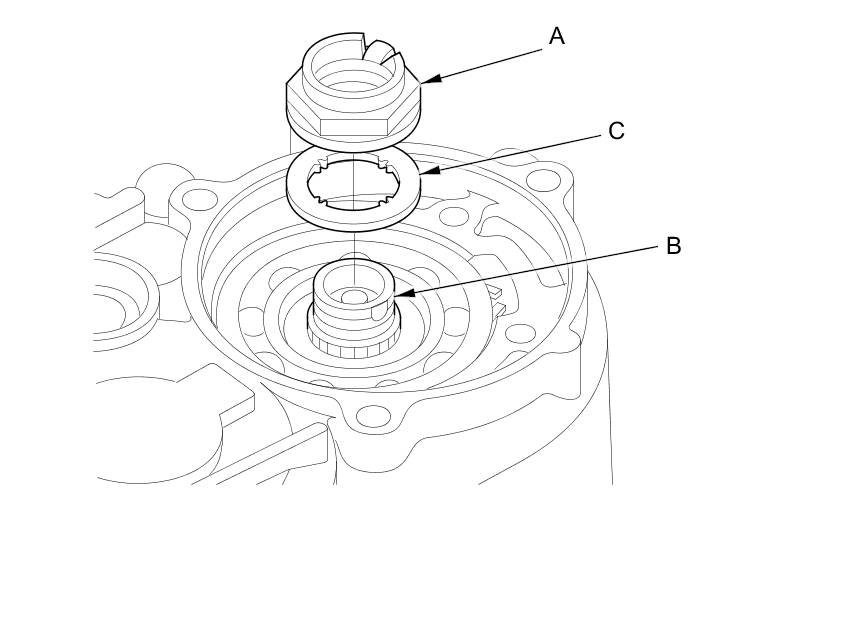 19. Pry the lock washer (C) and remove it.