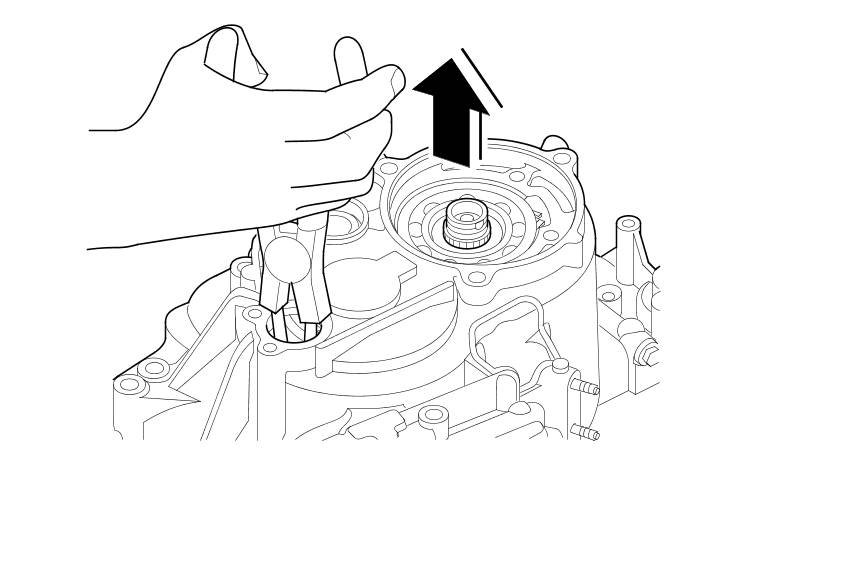 21. While expanding the snap ring of the countershaft bearing using snap ring pliers, lift the transmission housing.