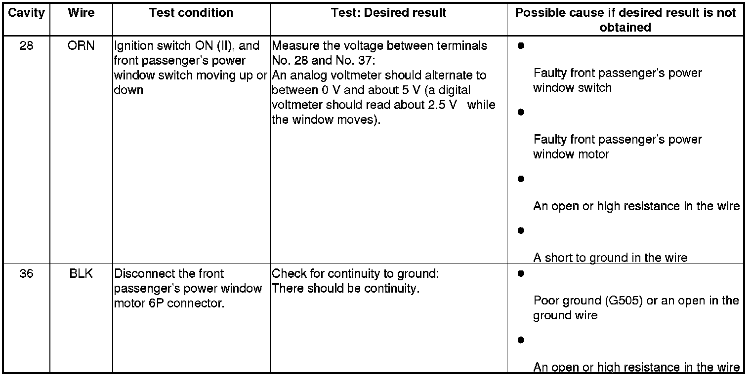 - If all the input tests prove OK, replace the front passenger's power window switch.