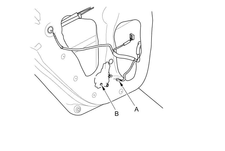 5. Disconnect the 2P connector (A) from the rear power window motor (B).