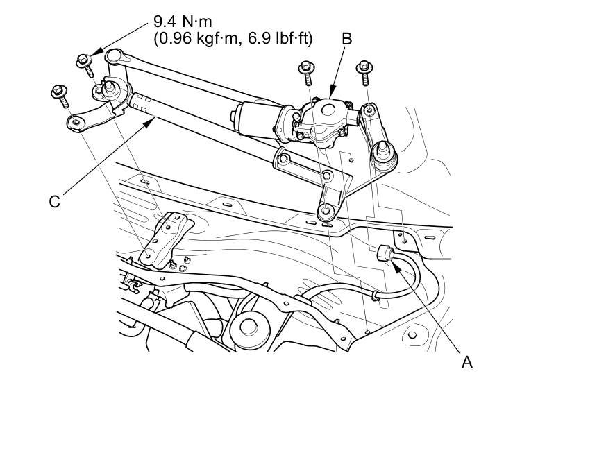 2. Install the windshield wiper motor to the wiper linkage assembly in the reverse order of removal.