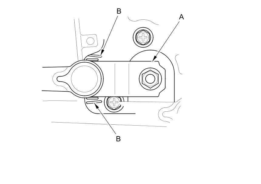 3. Install the link to the windshield wiper motor shaft, then align the mark (A) of the link and the mark (B) of the wiper linkage assembly (4-door), or align the link (A) and the mark (B) of the wiper linkage assembly (2-door).