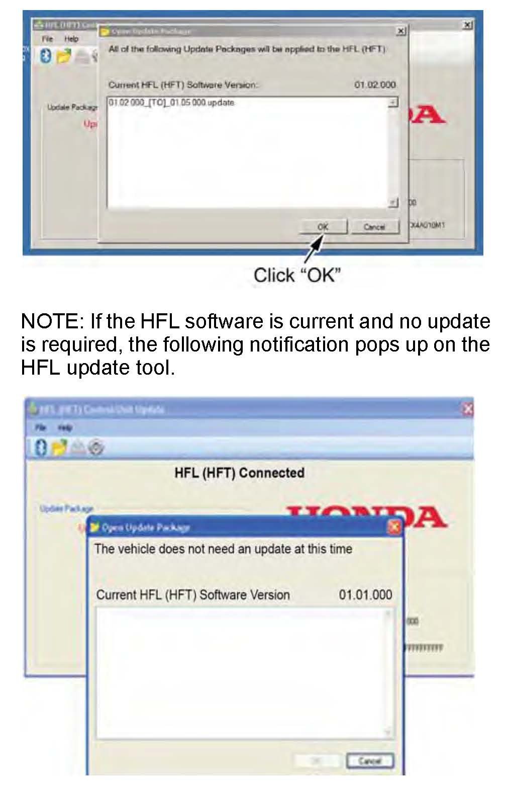 17. In the HFL update tool, click OK when the pop-up window indicates the reflash process is complete.
