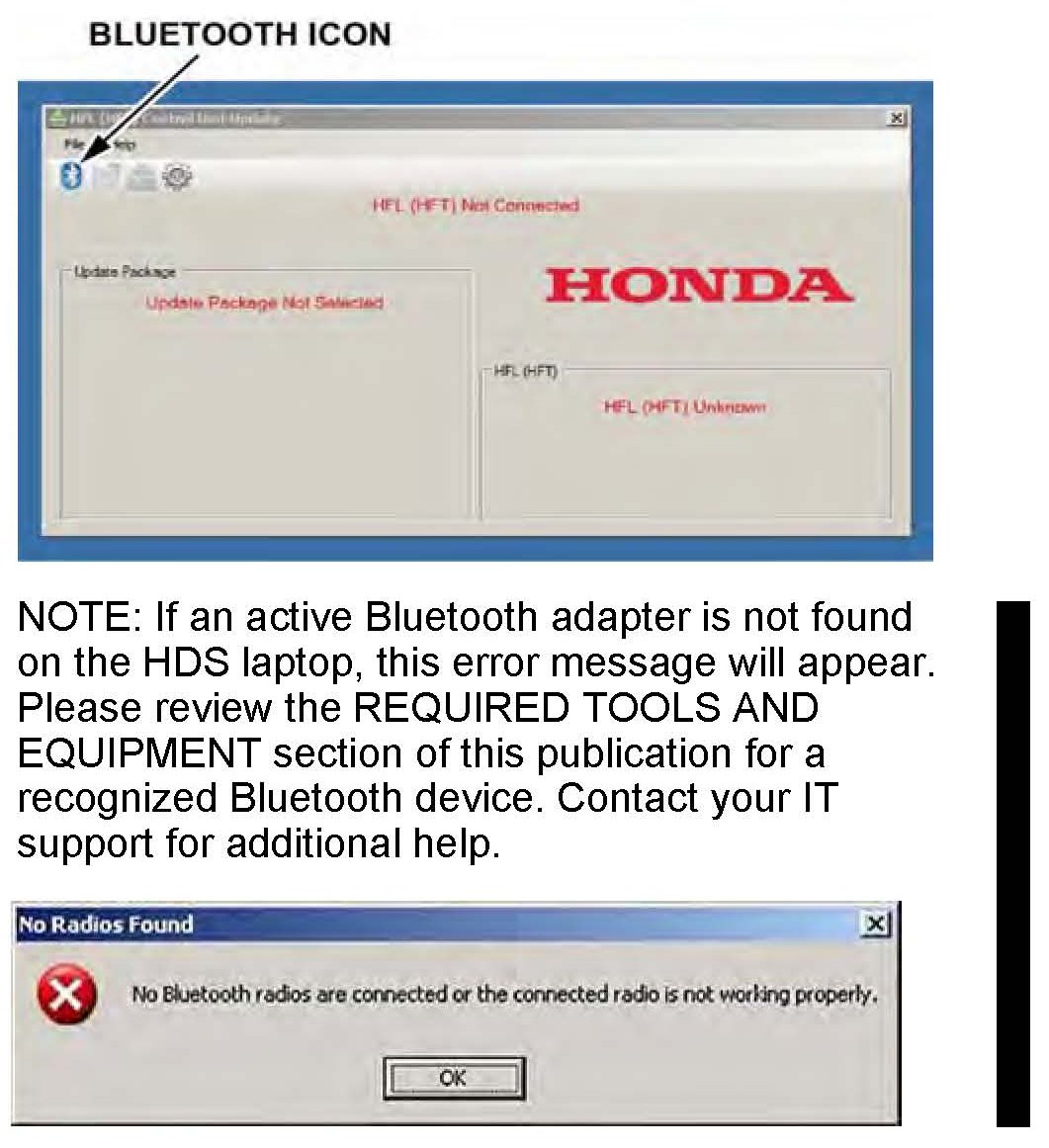 8. In the HFL update tool, click on the Bluetooth icon in the upper left-hand corner of the HFL Control Unit Update screen to prepare the HDS Laptop for the pairing process with the vehicle's HFL control unit.