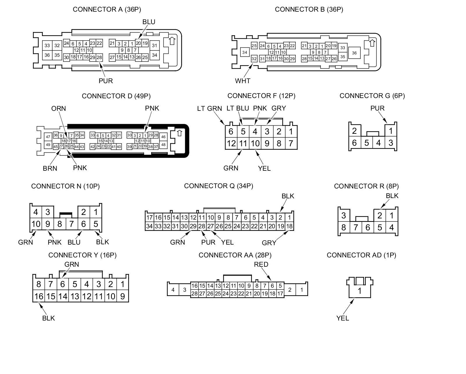 NOTE: All connector views are wire side of female terminals.