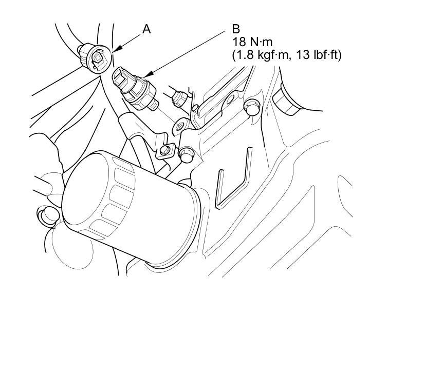 2. Disconnect the oil pressure switch connector (A), then remove the oil pressure switch (B).