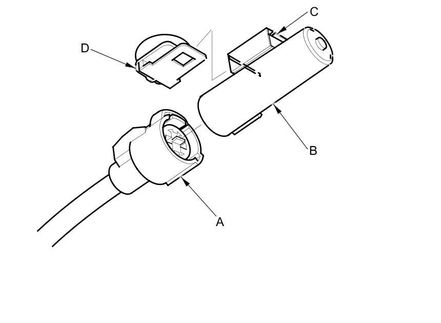 4. Lift the tab (C) to release the lock, then remove the outside air temperature sensor from the clip (D).