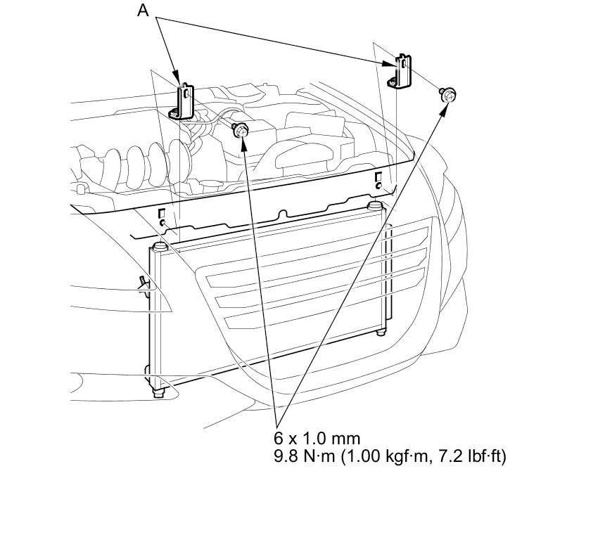 - Be careful not to damage the radiator or the A/C condenser fins when installing the A/C condenser.
