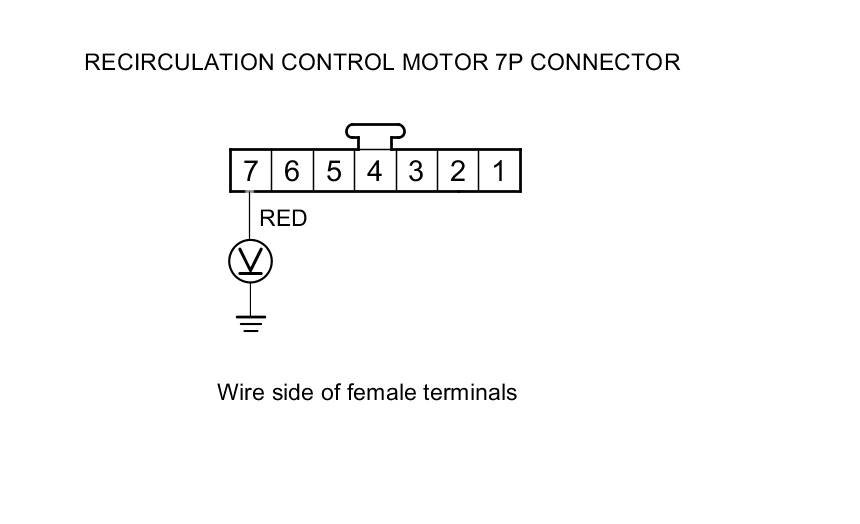 4. Measure the voltage between recirculation control motor 7P connector terminal No. 7 and body ground.