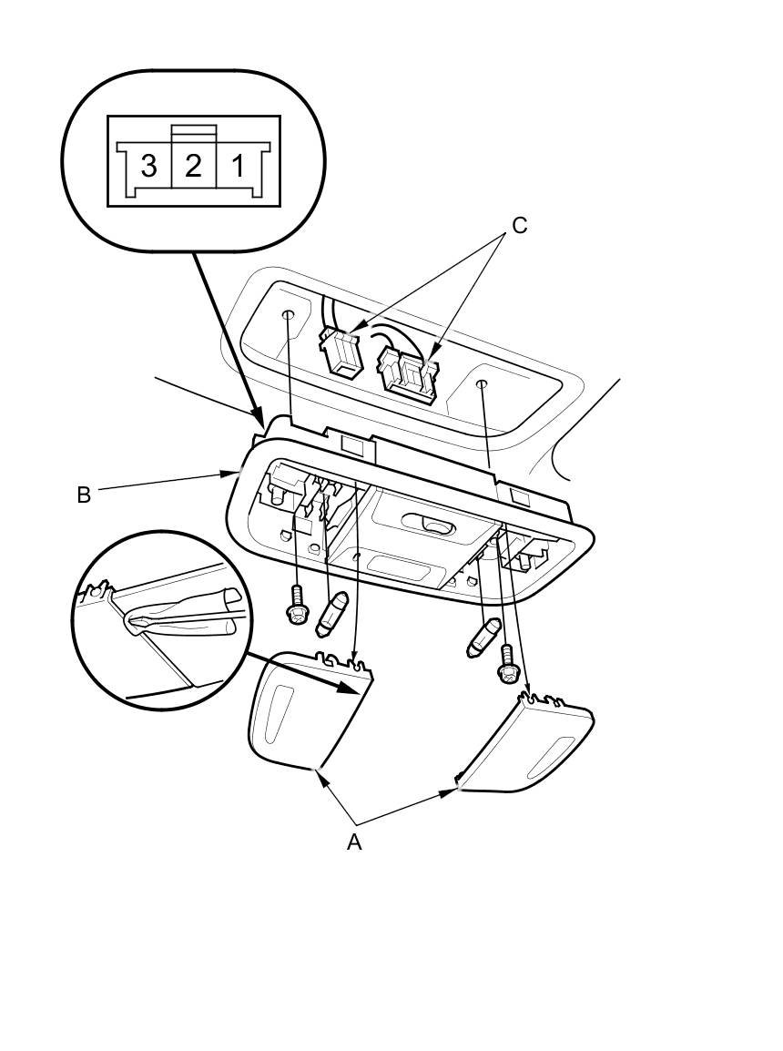 6. If the continuity is not as specified, check the bulb. If the bulb is OK, replace the individual map light.