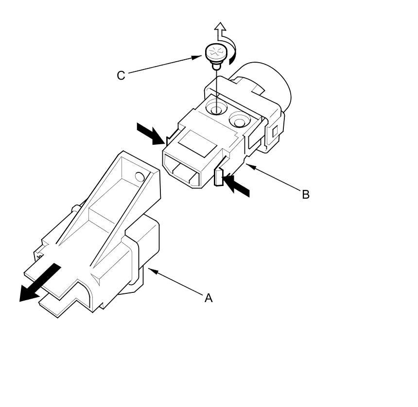 4. If the continuity is not as specified, remove the cover (A), and replace the switch (B) or bulb (C).