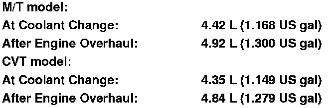 Engine Coolant Refill Capacities (Including the coolant reservoir capacity of 0.44 L (0.116 US gal)):