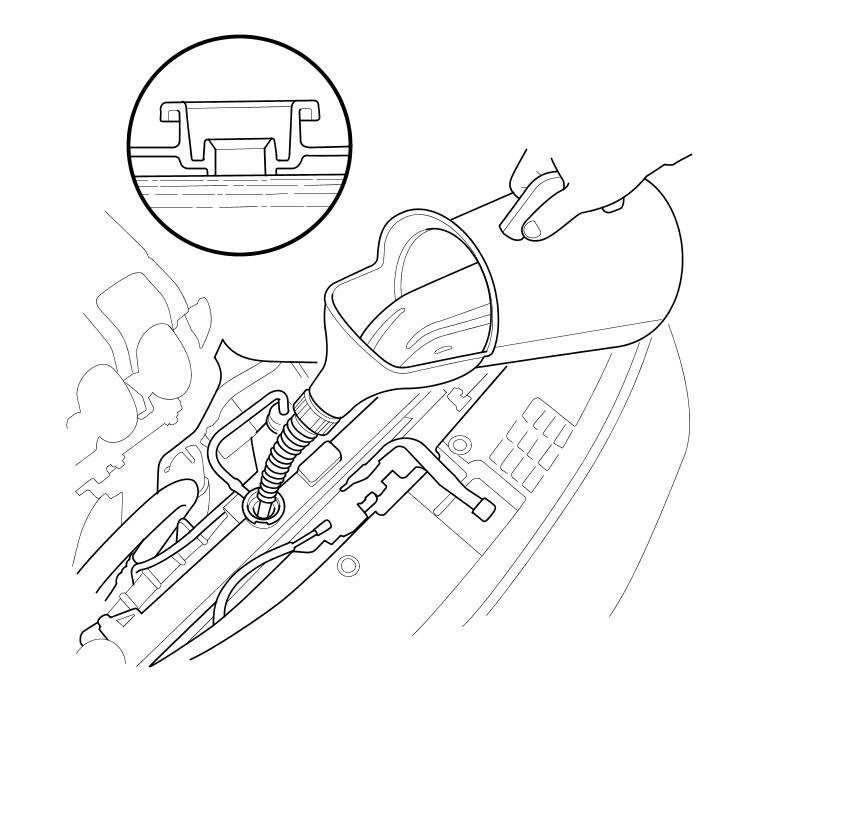 9. Pour Honda Long Life Antifreeze/Coolant Type 2 into the radiator up to the base of the filler neck.
