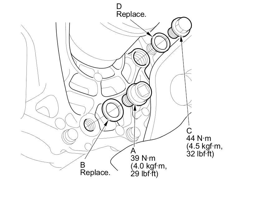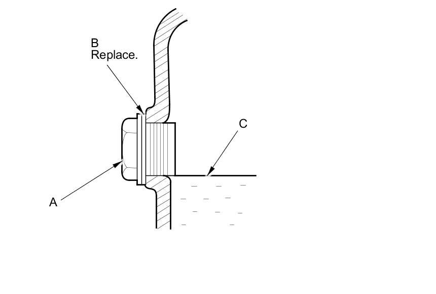 3. Remove the filler plug (A) and the sealing washer (B), check the condition of the MTF, and make sure it is at the proper level (C).