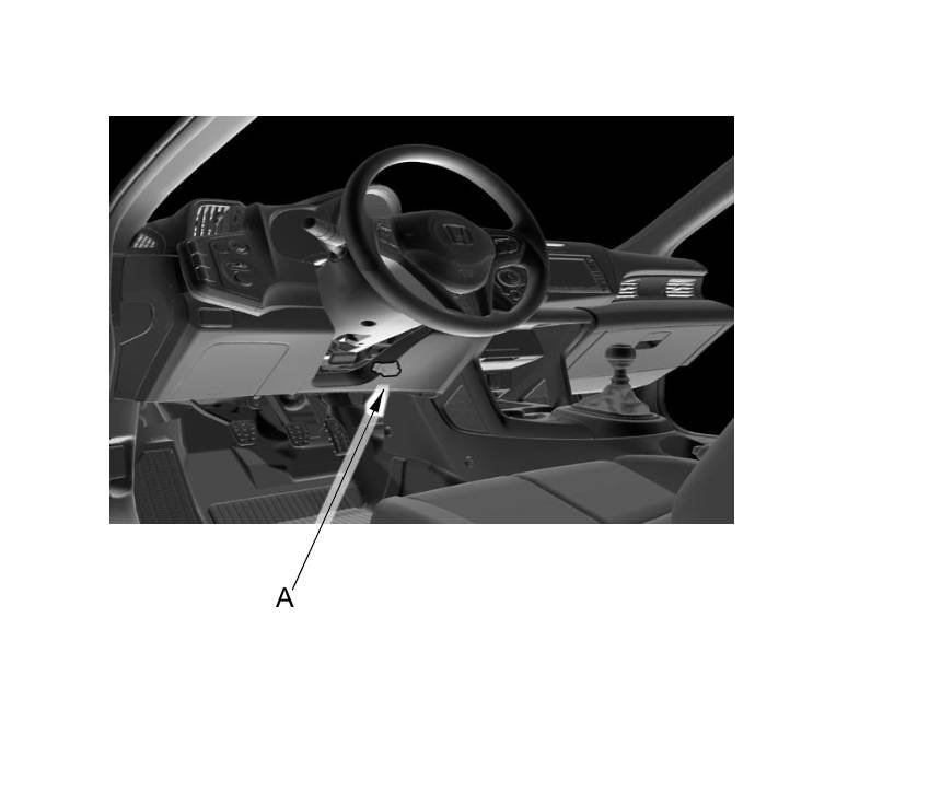 10. With the ignition switch in LOCK (0), connect the Honda Diagnostic System (HDS) to the data link connector (DLC) (A) located under the driver's side of the dashboard.