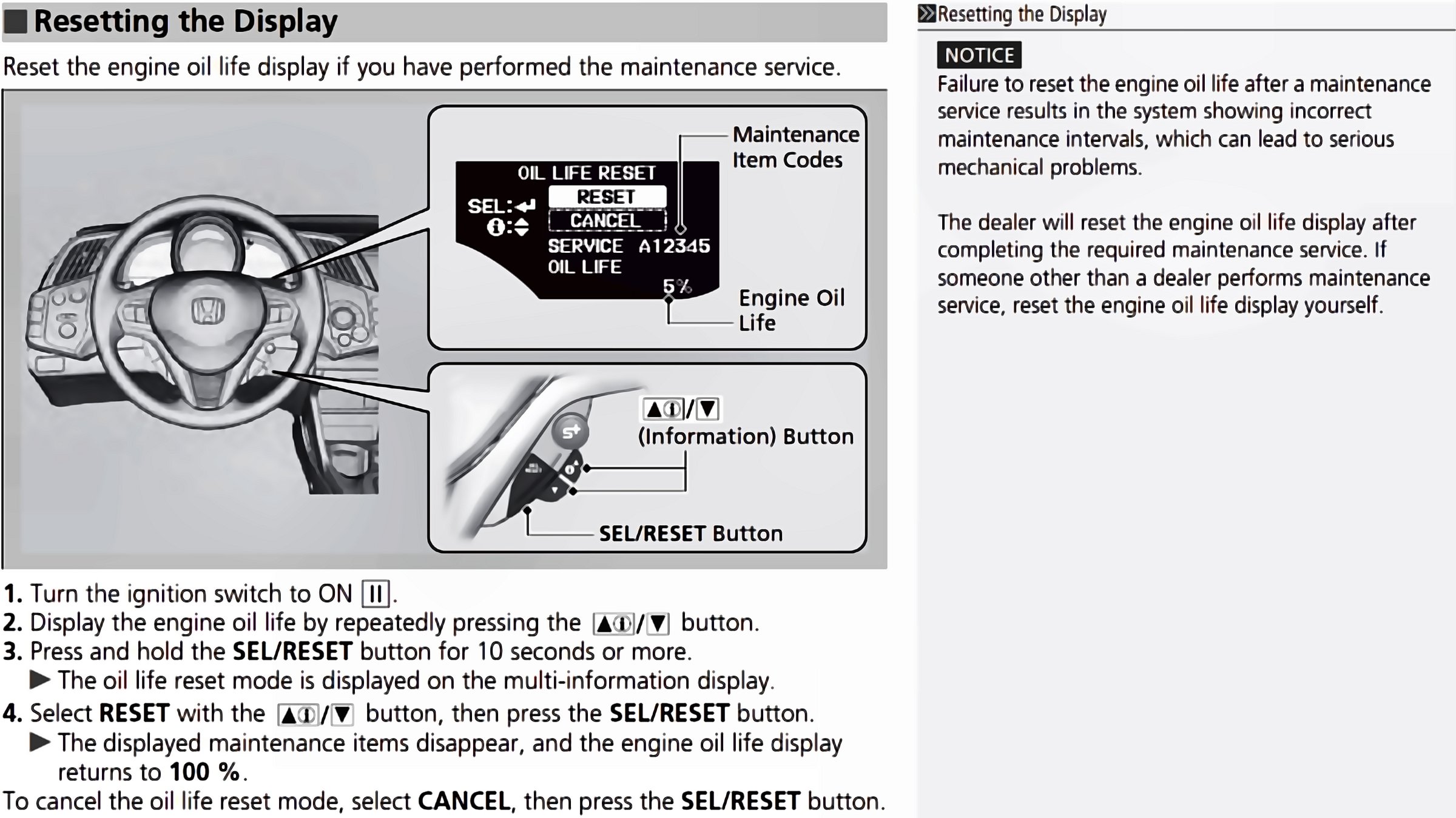 Failure to reset the engine oil life after completeing the required maintenance service results in the system showing incorrect maintenance intervals, which can lead to serious mechanical problems.