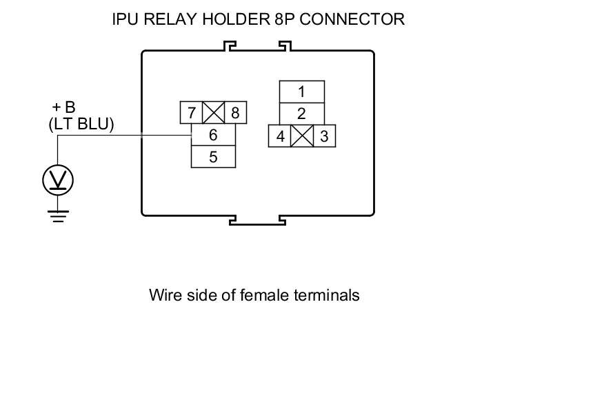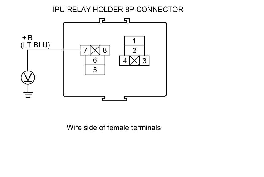 14. Measure the voltage between IPU relay holder (MCM relay 1) 8P connector terminal No. 6 and body ground.