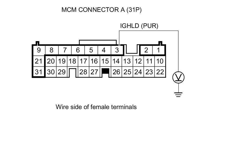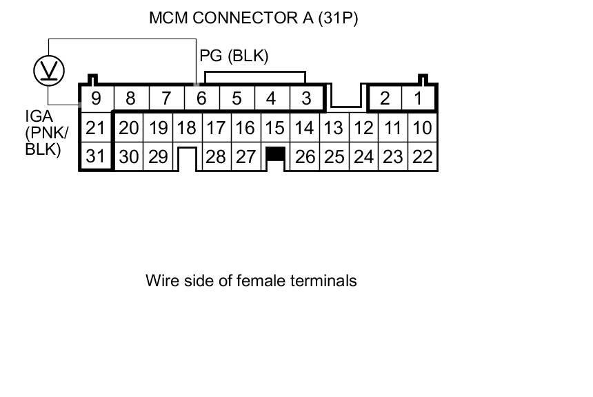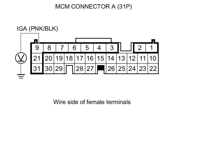 24. Measure the voltage between MCM connector terminal No. 9 and body ground.