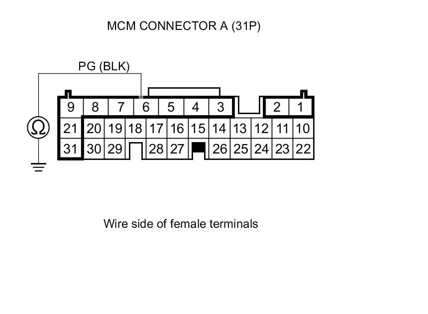 37. Check for continuity between MCM connector terminal A6 and body ground.