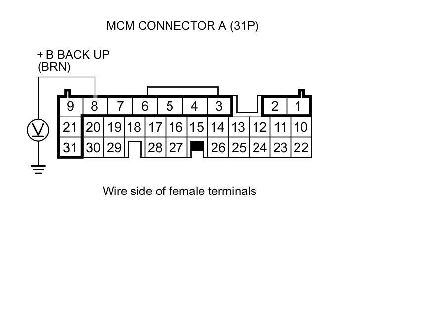 40. Measure the voltage between MCM connector terminal A8 and body ground.